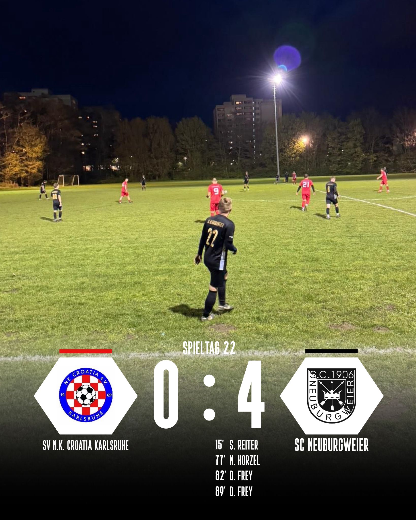 Auch in der zweiten Halbzeit änderte sich zunächst wenig am Spielverlauf. Dennoch blieb die Partie aufgrund des knappen Spielstands lange offen. Croatia kam zwar kaum zu zwingenden Aktionen, doch die Führung sorgte weiterhin für eine gewisse Anspannung auf und neben dem Platz. Das Spiel war über weite Strecken intensiv und spielte sich überwiegend im Mittelfeld ab. In der 77. Minute sorgte der eingewechselte Noah Horzel dann für die Vorentscheidung, als er einen gut vorgetragenen Angriff zum 2:0 abschloss. Damit war der Widerstand der Gastgeber gebrochen. In der Schlussphase machte der SCN alles klar, Domi Frey erhöhte mit einem Doppelpack in der 82. und 89. Minute auf 4:0.